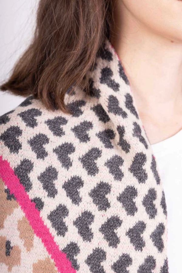"Love is Love" – Let strikket tørklæde med leopardmønster og hjerter ❤️