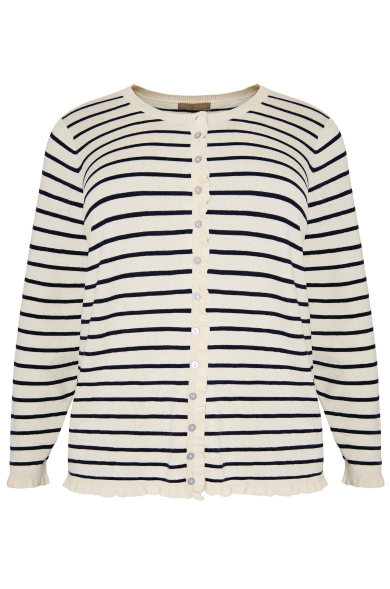 Fin og feminin viskosecardigan i smukke blå/råhvide striber. En let og elegant style med fine detaljer, der giver et blødt og romantisk udtryk.