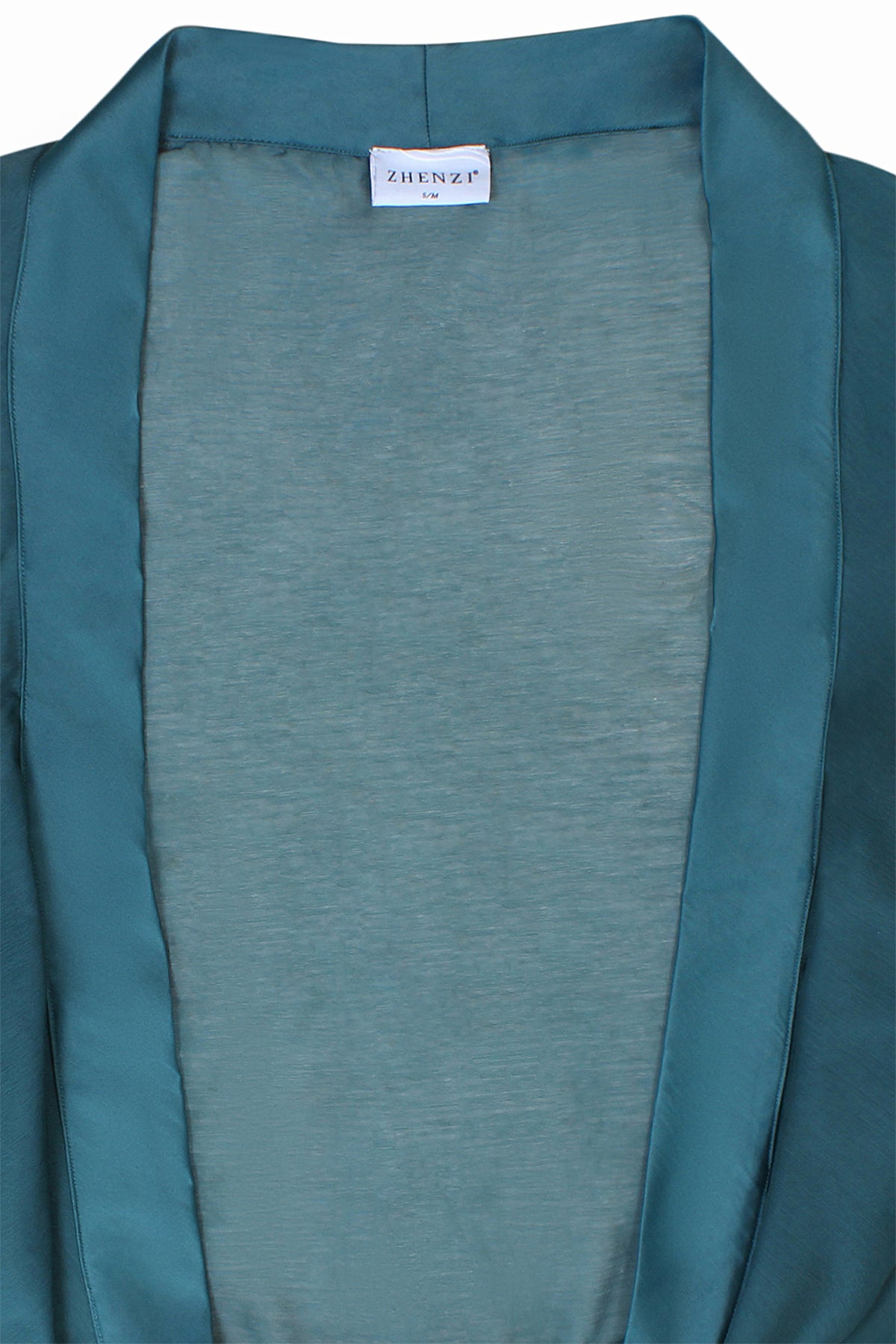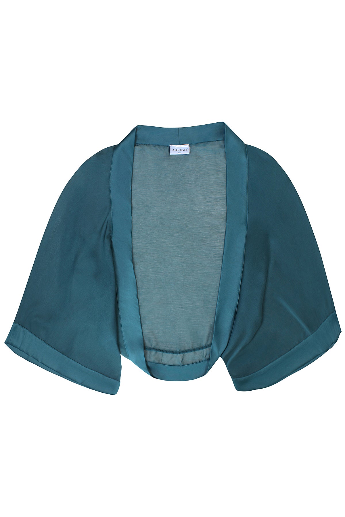 Flot og feminin bolero i let chiffon med elegante satin-kanter og 3/4 lange ærmer. Den er perfekt at bruge over bluser eller kjoler og tilføjer et sofistikeret touch til ethvert outfit. Ideel til både festlige lejligheder og når du bare vil give dit look lidt ekstra kant og elegance.