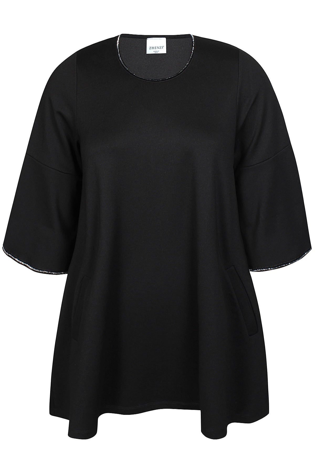 Flot tunika fra Zhenzi med rund hals og 3/4-lange ærmer med vidde.